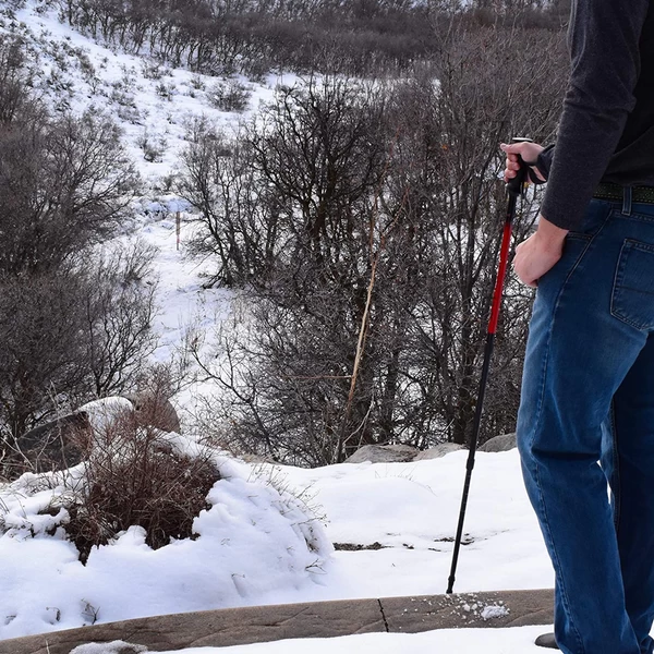 This quality trekking pole with an anti-shock system provides stability and support while reducing fatigue. The trekking pole is made of 6061 aluminum, has a multi-functional grip with an angled handle, and an adjustable wrist strap. With the angled handle the pole is suitable to be used as both a walking stick and a trekking pole.