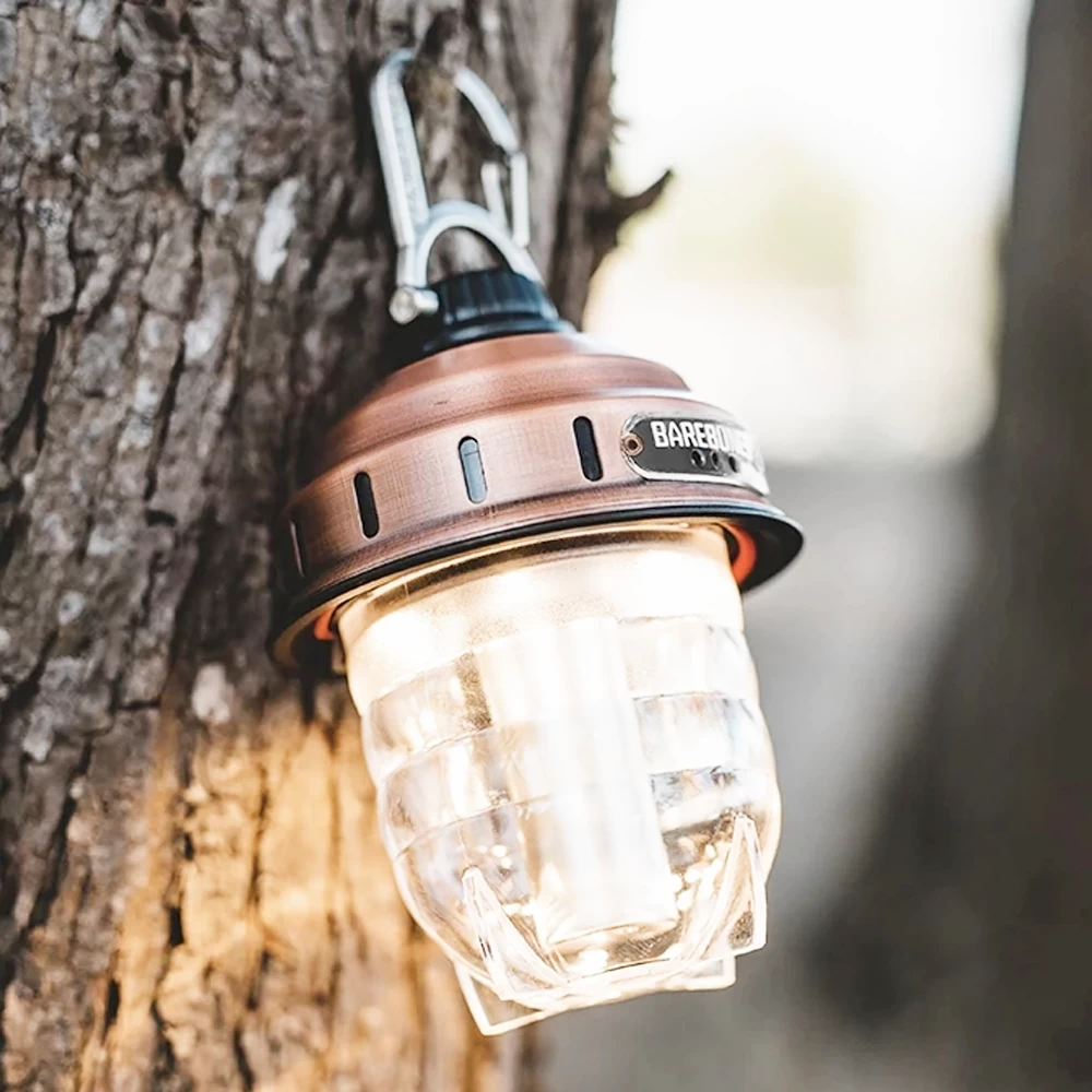 Our Barebones Beacon light comes with a smooth dimming feature that allows you to completely brighten your surroundings or simply set the mood. This portable light easily hangs with its carabiner top or stands on its sturdy base. The Beacon comes with a 30-inch cord for its rechargeable battery—which lasts 200+ hours on low or three hours on high. And thanks to a convenient battery life indicator, you’ll never be left in the dark.