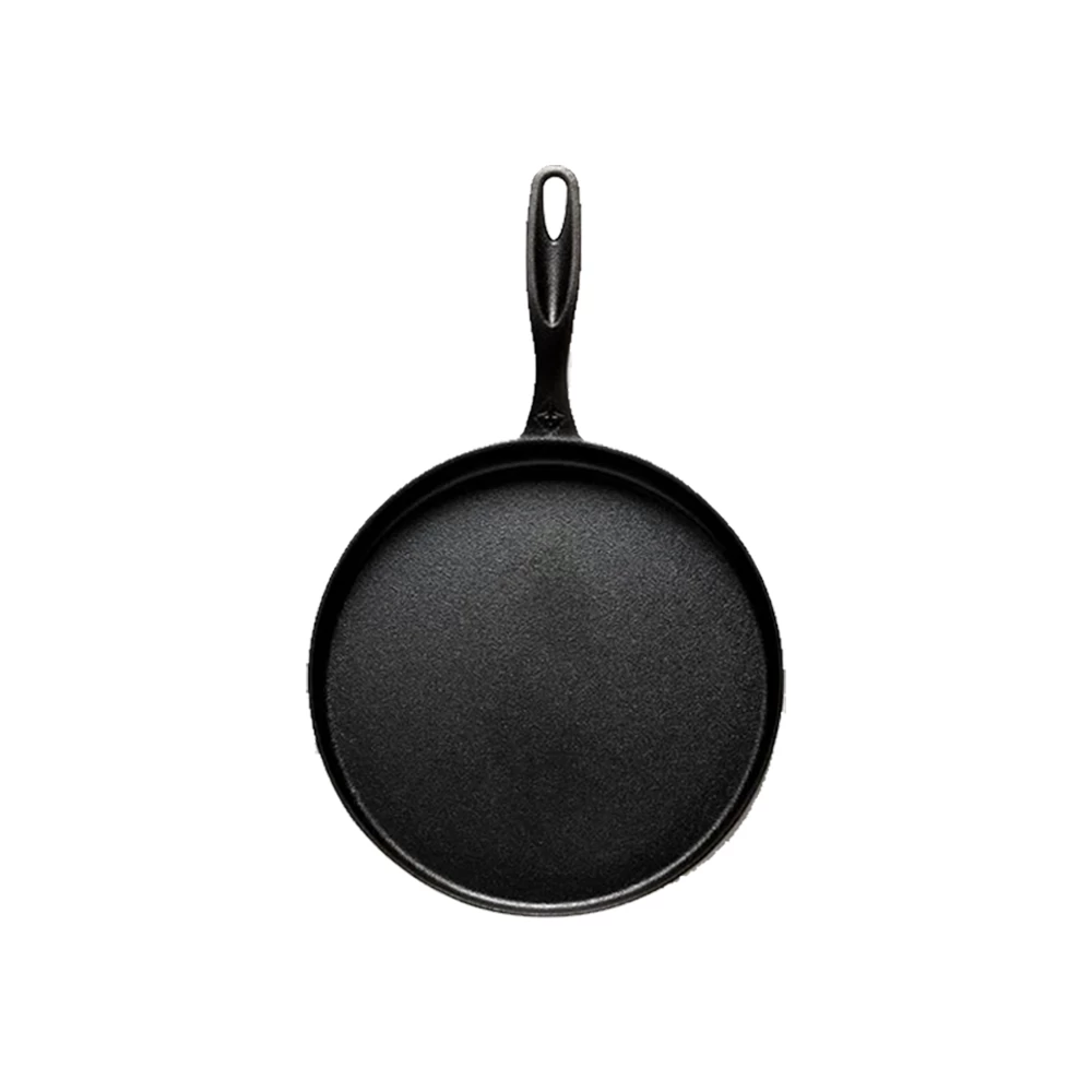 Use the Cast Iron Flat Pan to make crepes, pancakes, tortillas, pizzas, and more. Lighter than a skillet and smaller than a griddle, it’s versatile yet easy to store and carry. Naturally nonstick with open sides, flipping and serving delicate dishes is simpler than ever.