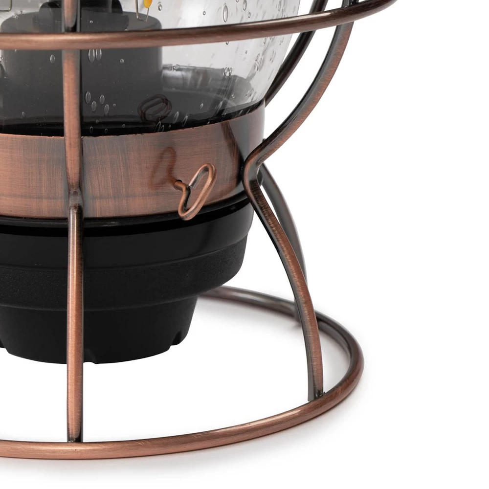 A modern twist on an antique and well-loved Union Pacific lantern. Gorgeous seeded glass and copper accents make this a unique light for a curated dinner table or at camp. High-tech and functional, this lantern utilizes battery or USB with a run time of 100+ hours on low or 3.5 hours on high. Adjustable brightness LED Edison-style bulb provides a classic warming glow perfect for every occasion.