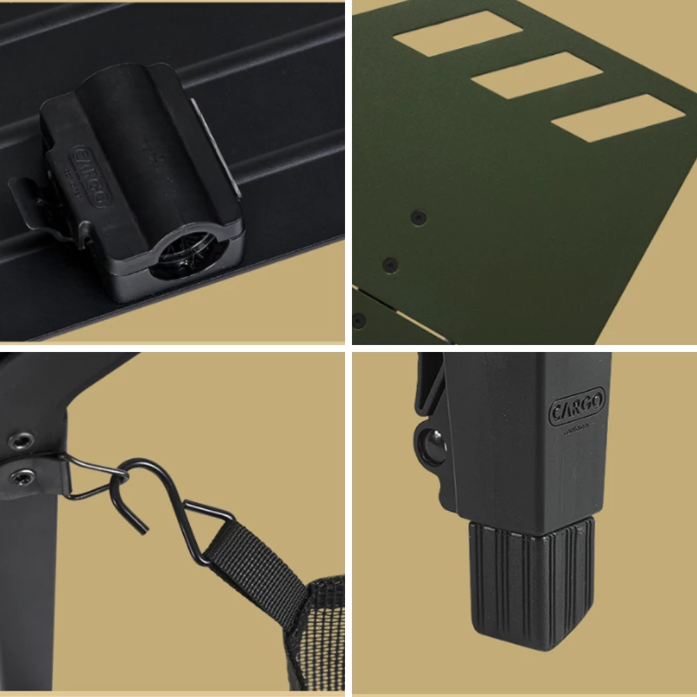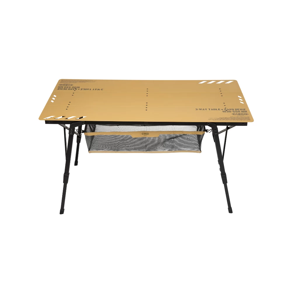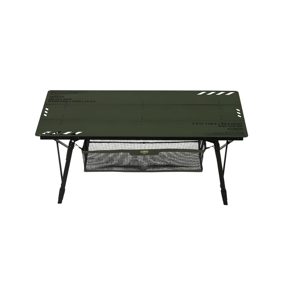 The patented 3-WAY TABLE is a folding table exclusively developed by CARGO CONTAINER. 3-WAY TABLE is the world’s first 3-part separating/combining table. This main table enables convenience and safety at the same time. Since the specifically developed connection coupling combines the countertop and the leg frames sturdily, the table is not separated out while moving or using it, which allows you to use it stably.