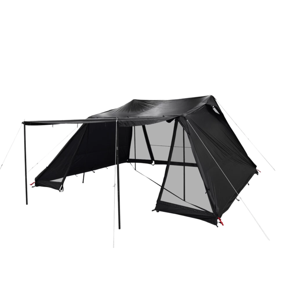 It is a shelter that uses 4 poles and does not feel oppressive even when fully closed.