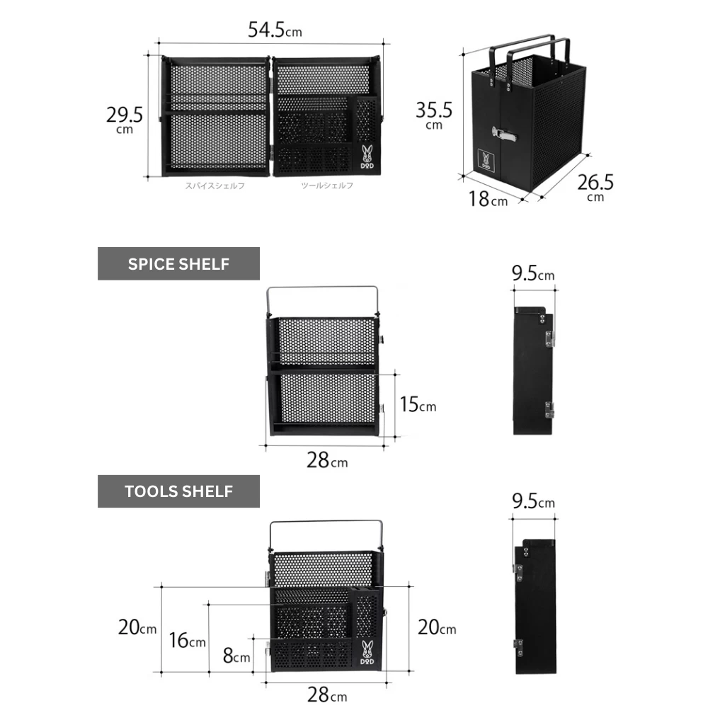- Weight: (Approx.) 3.3kg | Spice shelf unit: (Approx.) 1.3kg | Tool shelf unit: (Approx.) 2kg
