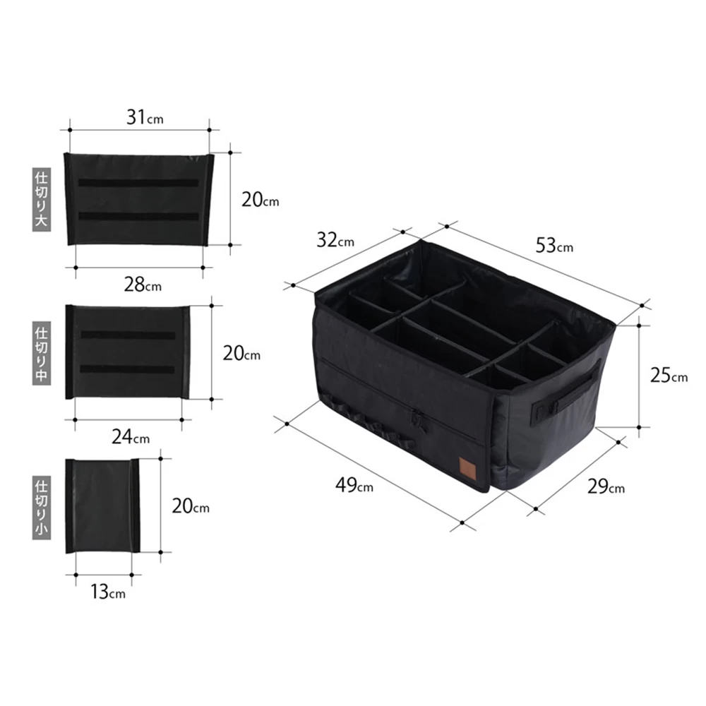 It is an optional part to make the box “Yokumiru Yatsu”, which is convenient for transporting and storing outdoor gear, more convenient. Partition your important gear to make it easier to organize and protect it with cushioning material.