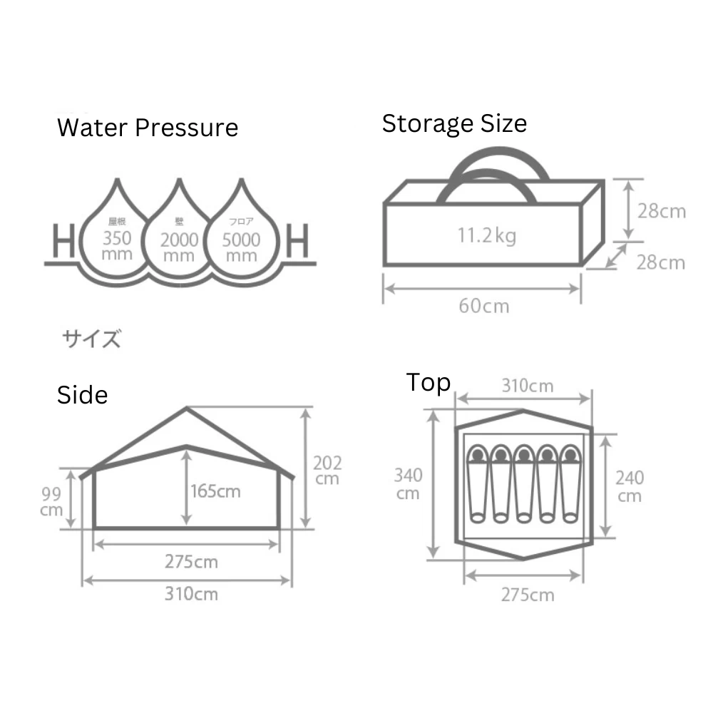 - Since the floor size is almost the same as that of Kamaboko Tent 3M, you can use the mat sheet set (TM5-704) for Kamaboko Tent 3M (sold separately)
