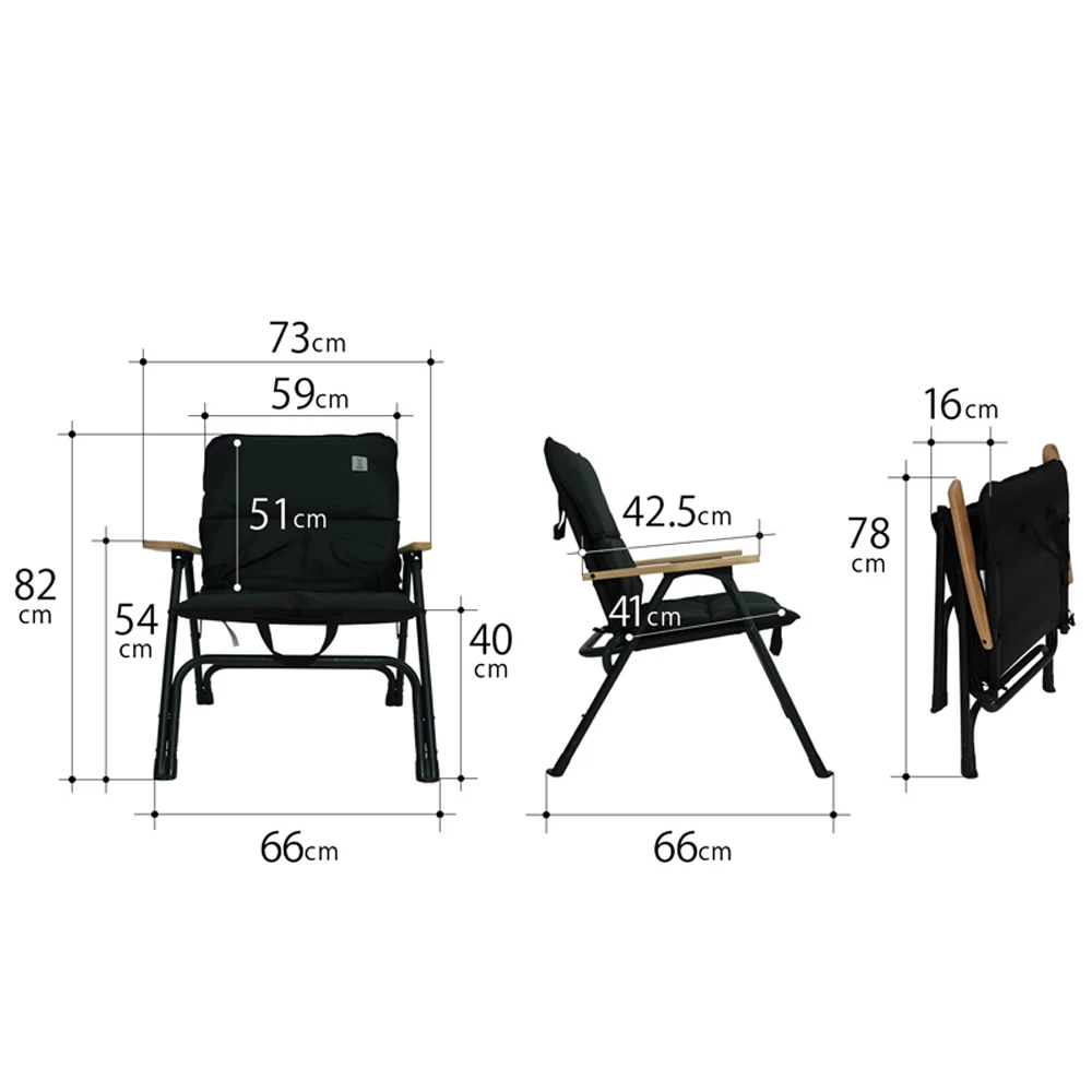A fluffy and spacious one-seat sofa for camping, where you can enjoy the relaxing time of camping luxuriously. It uses an aluminum frame and is designed to be folded and carried with one hand.