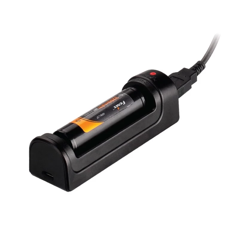 The Fenix ARE-X1 is a single bay smart charger dedicated to work with 18650 and 26650 batteries. This charger features Micro USB battery charging, USB battery discharging, and LED indicators that allow customers easy detection of charging and power status.