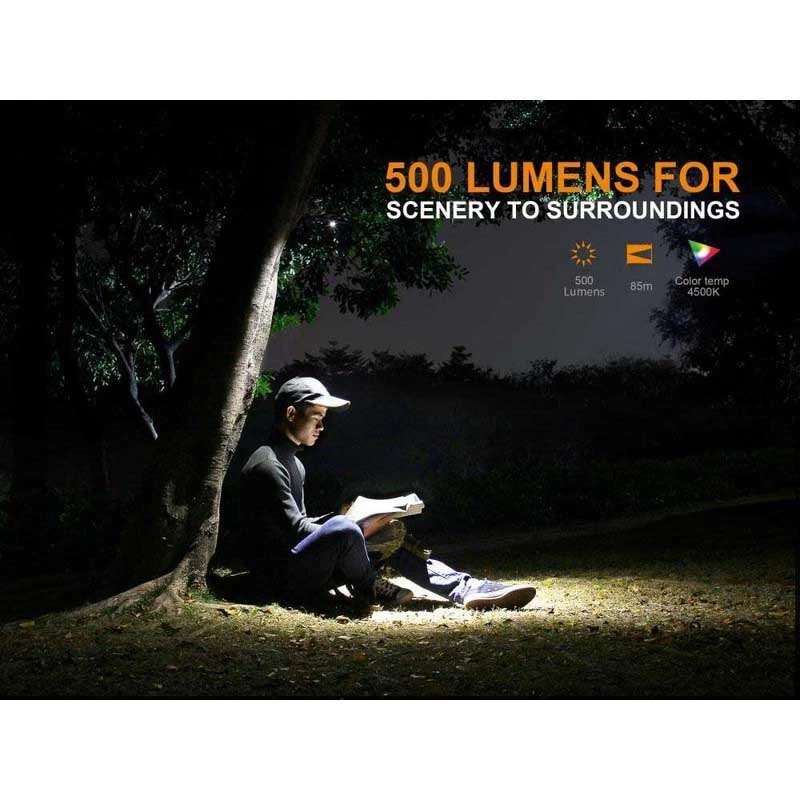The Fenix LD15R rechargeable flashlight is a compact, hands-free light source that utilizes a right-angle head—perfect for those that need forward facing 90 degree wide angle light for high and low light situations. This light is compatible with MOLLE / Body Cam systems for the professional environment or can be a perfect fit to clip on your backpack for those personal hikes. The two-way body clip and magnetic base allow you to mount this light to just about anything. Powered by a rechargeable 16340 battery (included), this tiny flashlight blasts 500 lumens at a distance of 279 feet (85m). Easily switch between the seven lighting modes that include white and red light options. IP68 rated waterproof and dust proof build will ensure this light is there for you when you need it.