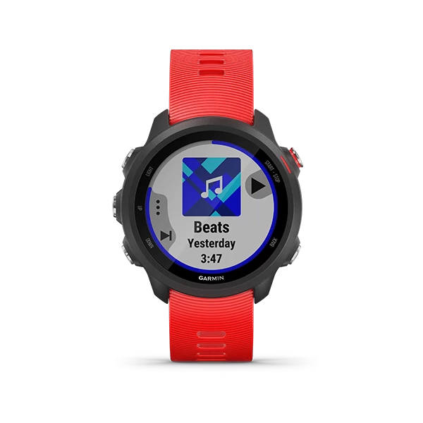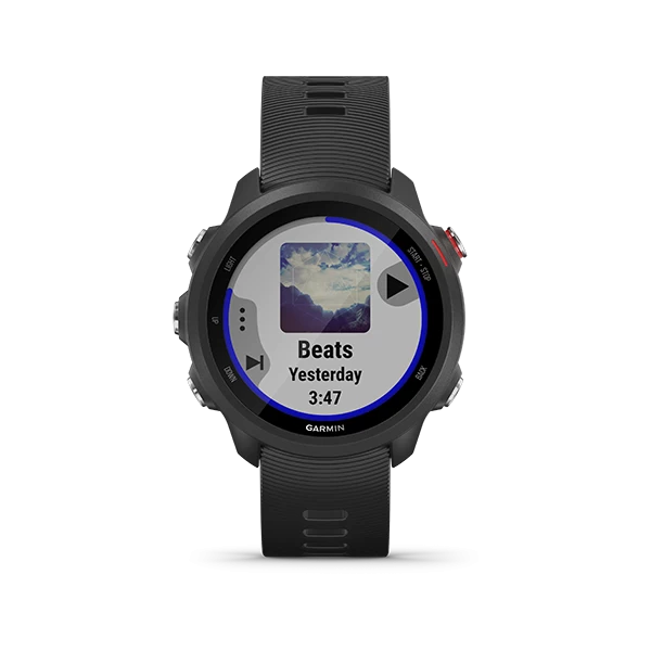 You do the running. Forerunner 245 Music does the thinking. It even gets to know you, mile after mile and song after song. This GPS smartwatch has storage for your favorite tunes, so you can keep moving to the music without having to lug your phone along. It also tracks your stats, crunches the numbers and gets to know all about your performance, your running form, your training history and even your goals. All you need to focus on is putting one foot in front of the other.