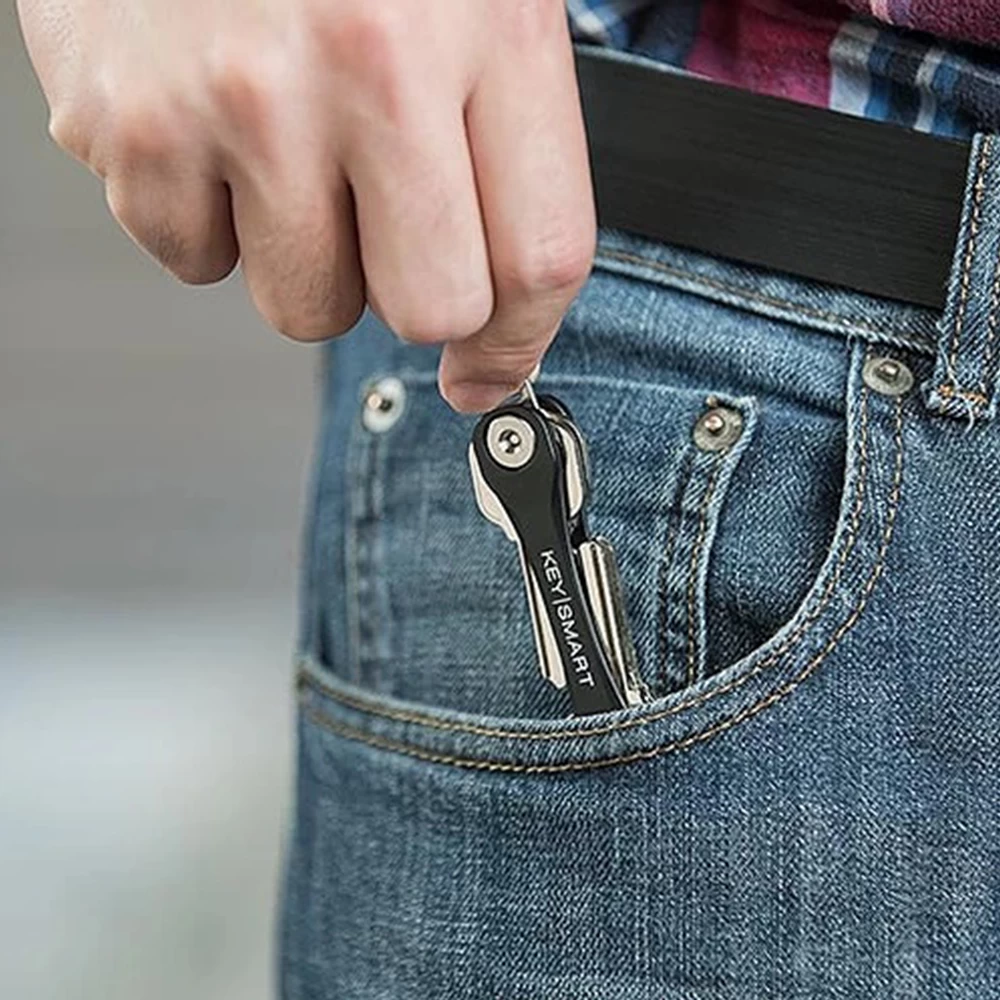 KeySmart Flex is the lightest KeySmart on the market. The Swiss style key organiser fits comfortably into your pocket or purse. Made with highly flexible plastic and stainless steel hardware for extra durability.
