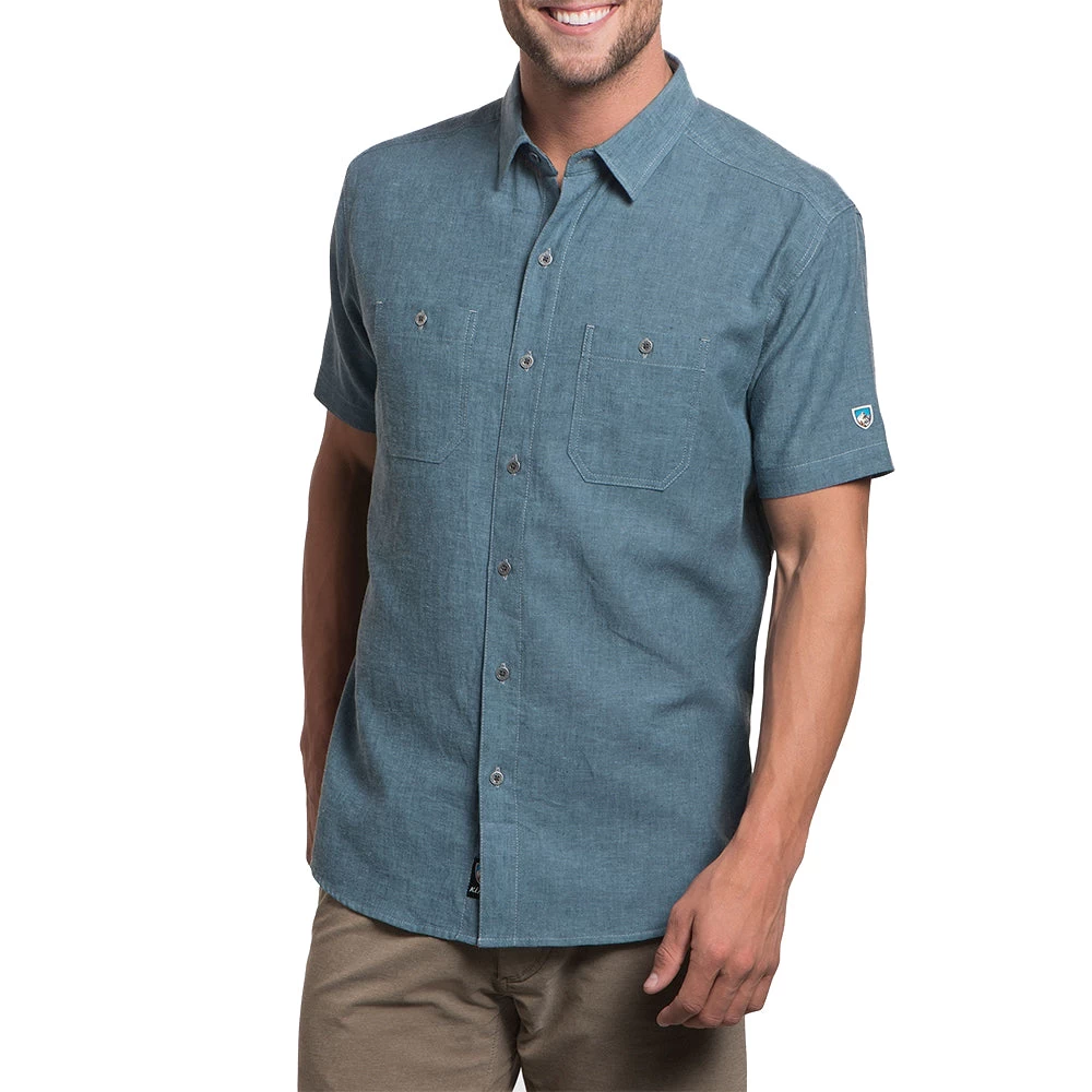 Comfort without the cling. The men’s Invoke shirt from KUHL keeps you cool with superfine mesh paneling and a special 3D microfiber technology designed to keep fabric off your skin.