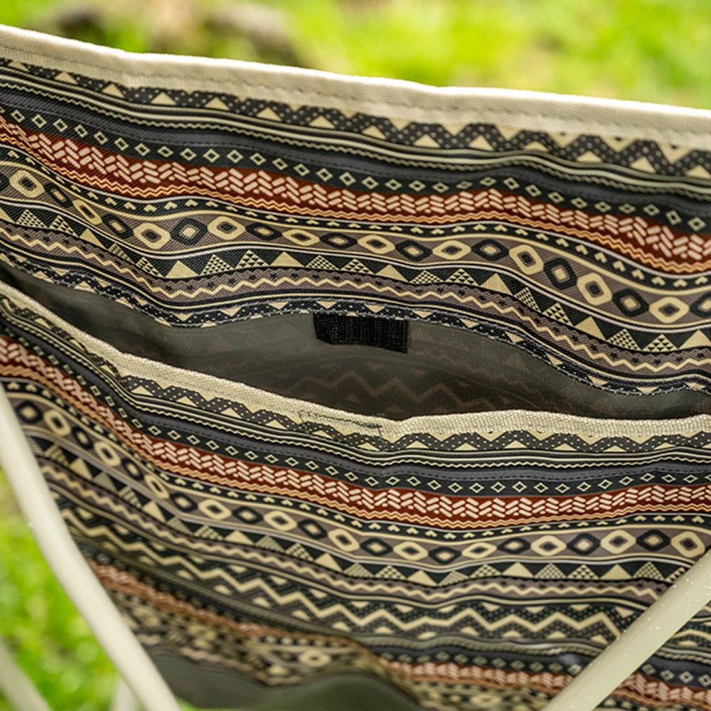 Luxurious design with a sensual pattern and a durable seat fabric with a sturdy aluminum frame provide comfort and stability when seated.