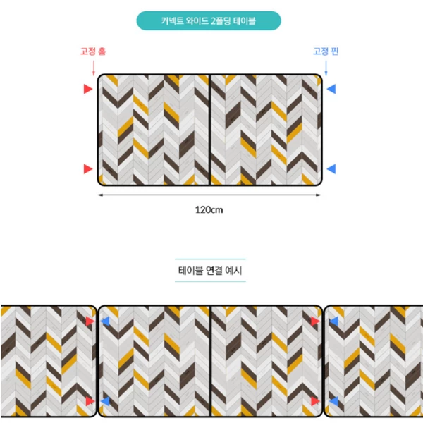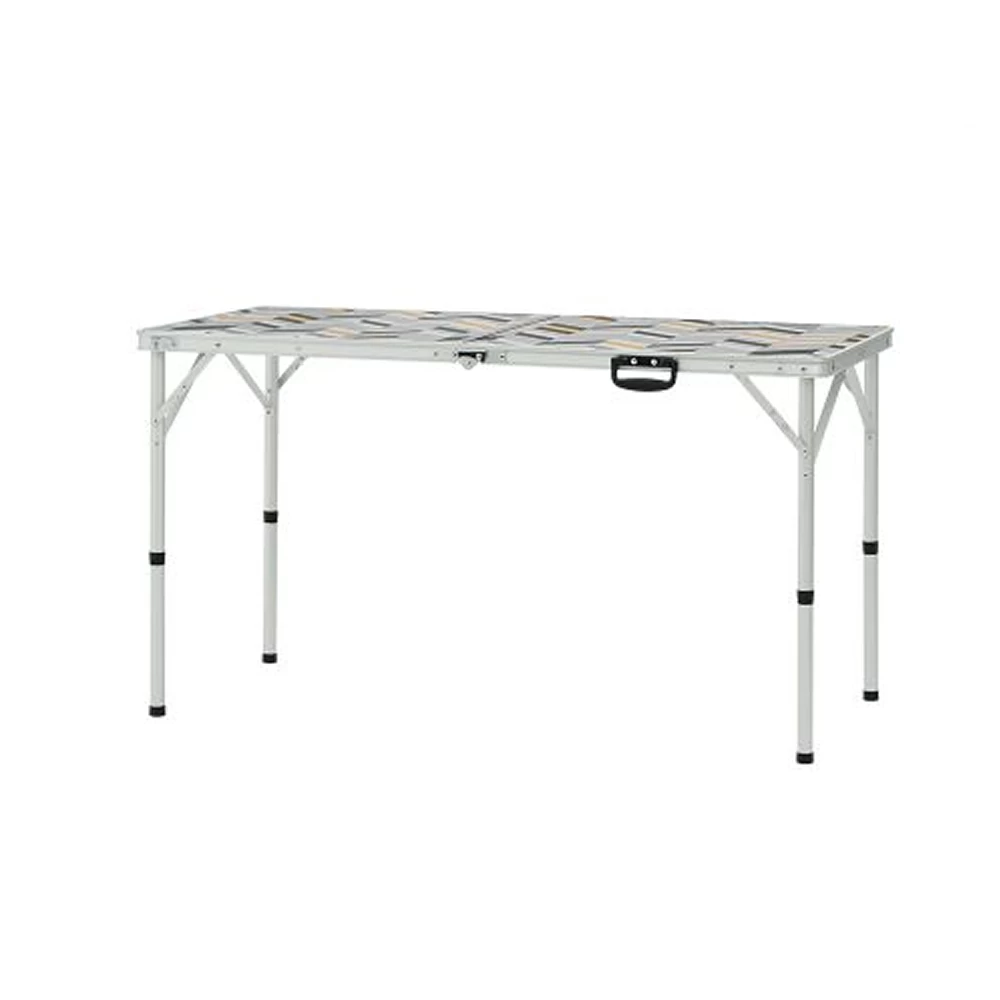 This is a folding 2-fold table for camping that provides ample space and is easy to install and store. It has a connect system that can be used by connecting two or more tables so that several people can enjoy it together. It is a wide-type two-folding table with ample space, and it has high space utilization and can be used solidly with PLYWOOD material. This is a 2-fold camping table made of an aluminum frame with light weight and strong support.
