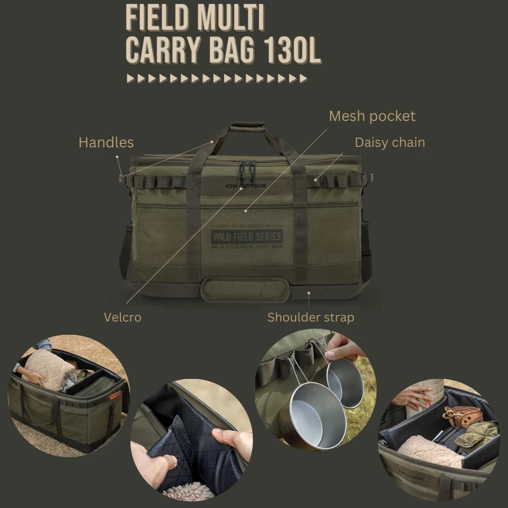 With a multi-carry bag with a generous capacity of 100L and 130L, you can safely store various camping accessories during camping and outdoor activities. The center of the field sensibility carry bag is equipped with Velcro, so you can use the patch to create your own unique style.