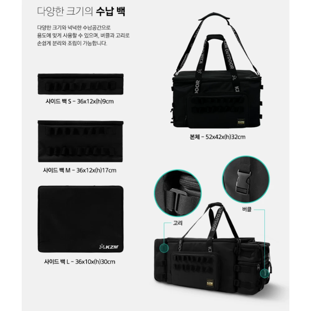 This premium tower storage bag is highly versatile with a luxurious black color design and a variety of storage spaces. Since it provides enough space of 86L, it is good for storing various items during outdoor activities such as camping or fishing. The side bag can be divided and stored according to the purpose and size, so it can be easily removed and assembled, allowing efficient use of space.
