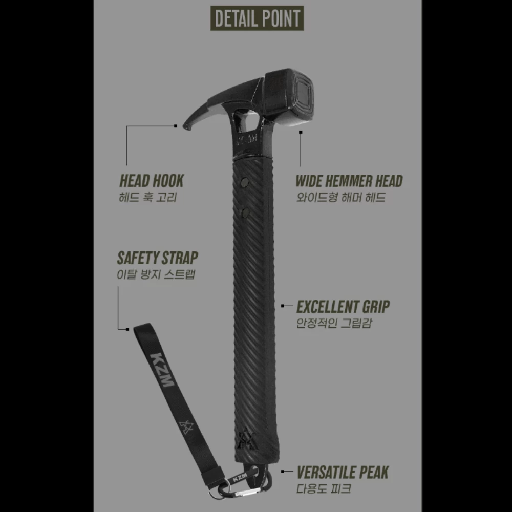 The tank hammer has a 40x40mm wide hammer head that can be hammered with a stable, superior hitting sense, and is engineered in an ergonomic diagonal design, providing a stable and excellent grip to the user with high friction. In addition, the head hook is made at an exquisite angle, making it easy to remove the pack. In addition, there is a strap that is hung on the wrist when using a hammer to prevent the hammer from falling off, so the user can use the hammer safely.