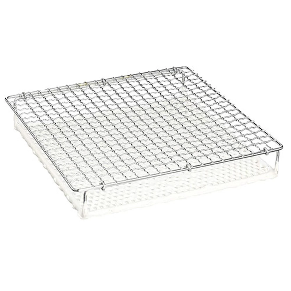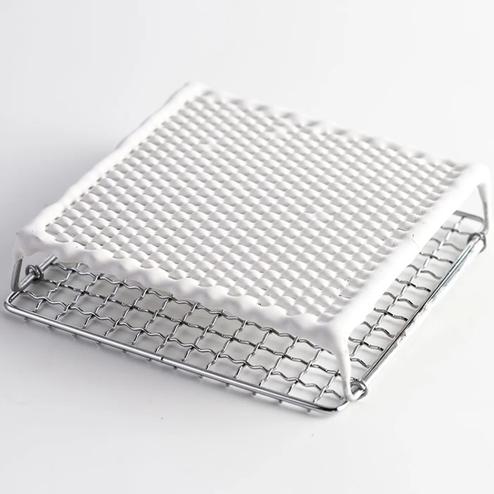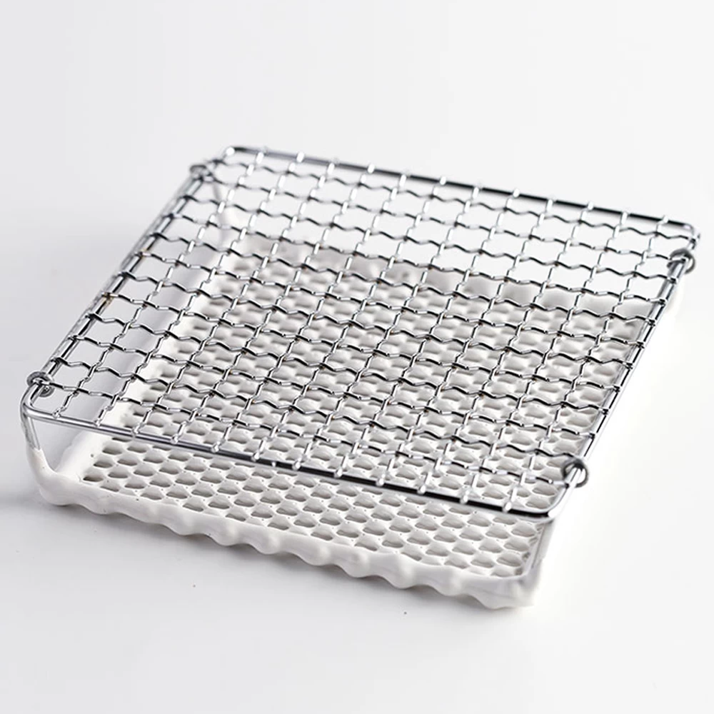 - The direct fire baking mesh has two layers of structure. The upper layer is made of iron chrome plated material, which is stable and safe. The lower layer is covered with white ceramic layer. When the ceramic layer is heated on the fire, it will heat through infrared radiation to bake food.