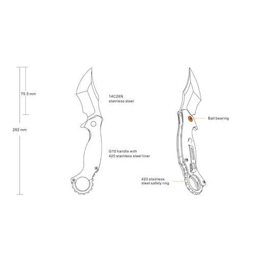 - Blade Material: 14C28N stainless steel (58~60 HRC)