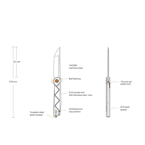 - Blade Material: 14C28N stainless steel (58~60 HRC)