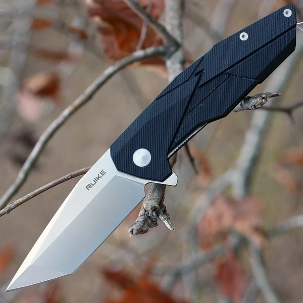 P138 is a practical cutting tool owing to its robust tanto blade. Made of 14C28N stainless steel in fine polish, and shaped to an optimal tanto style, the blade features razor sharpness and fairly strong tip. The built-in thrust roller bearing pivot secures quick blade deployment once you get the flipper down. In addition to the liner lock, a back safety lock reinforces while wielding the knife in working. The G10 handle is ergonomically grooved to be skid-proof for comfortable holding and performs well regardless of harsh environments.