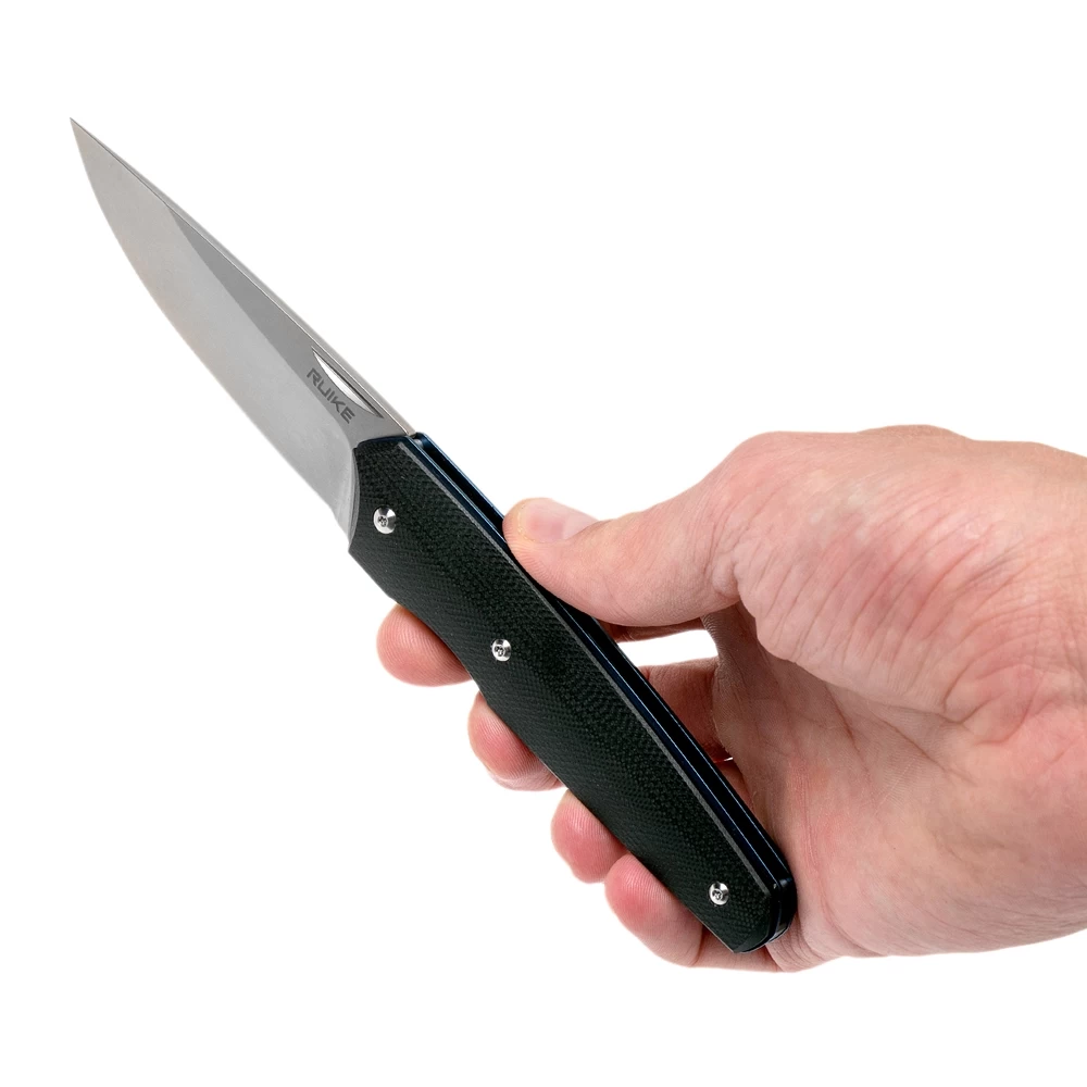 For EDC tool fans seeking safe-to-carry knives, P848B is worth recommending. Without any projecting parts like a flipper or thumb stud on the blade that may cause accidental blade opening, the P848B is easy to carry. Utilizing an easy-to-operate nail nick, P848B still offers smooth blade deployment thanks to the built-in roller bearing washer. The G10 handle is improved to be more tough and resistant to corrosion with blue titanium-coated stainless steel liner.