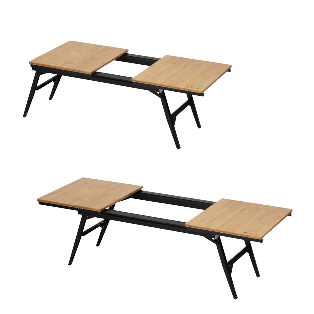 The Extension IGT is a two-unit expandable Iron Grill Table. The table has a minimalistic design that does not require any connection tools or extension pieces. The Extension IGT features two laminated bamboo tabletops and an aluminum alloy stand. To use, slide each side of the bamboo to their respective opposite sides and insert a stove in the middle. Pair the Extension IGT with the Double Burner Stove GS-230 for a complete cooking set-up.