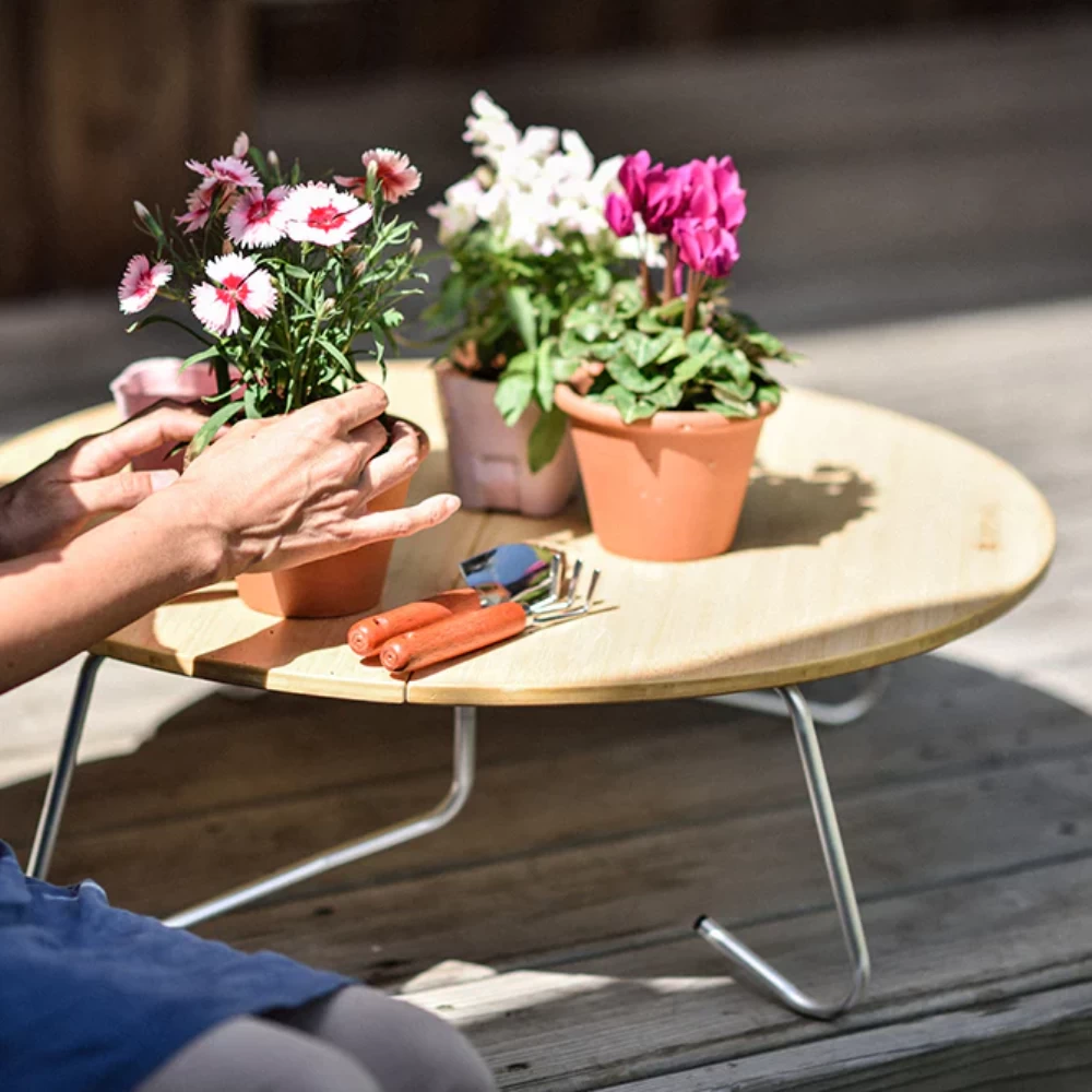 Designed in Japan, the Renewed Single Action Table Low Medium features a laminated bamboo top in an updated finish and stable aluminum legs. The low version of the Renewed Single Action Table offers more portability and is easy to take on day trips, picnics, and car camping excursions. Use the table for groups of up to four people. The Renewed Single Action Table Low folds into a thin panel for compact carrying and storage. Pair the Renewed Single Action Table Low M with the Low Beach Chair for a complete set-up.