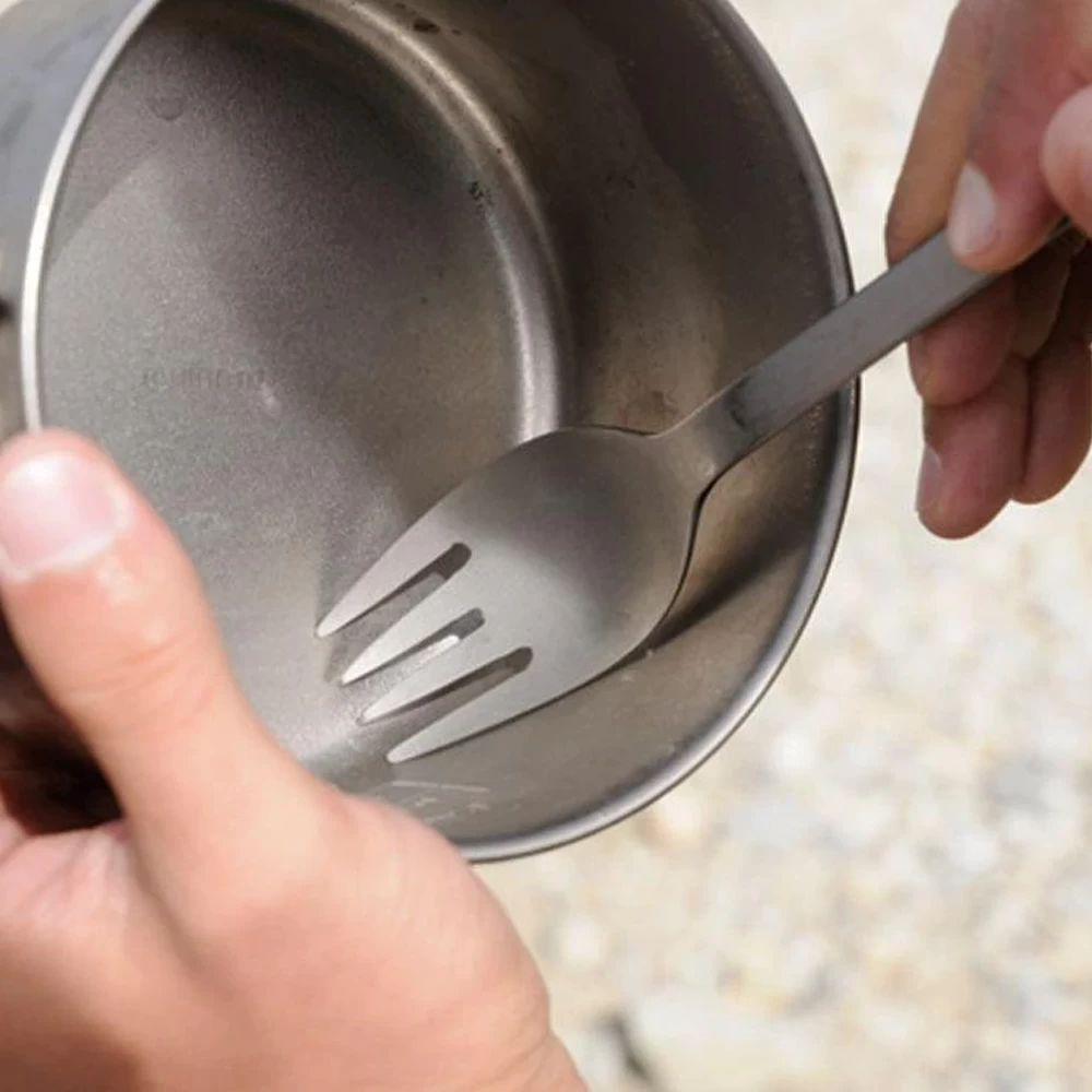 The Titanium Foon is manufactured in Japan using durable and lightweight titanium. Use the Titanium Foon for noodles, rice or soup. It features a hybrid design that allows you to consume any solid or liquid meal. Noodles, Rice, or Soup, the Foon is the ultimate utensil to handle them all.