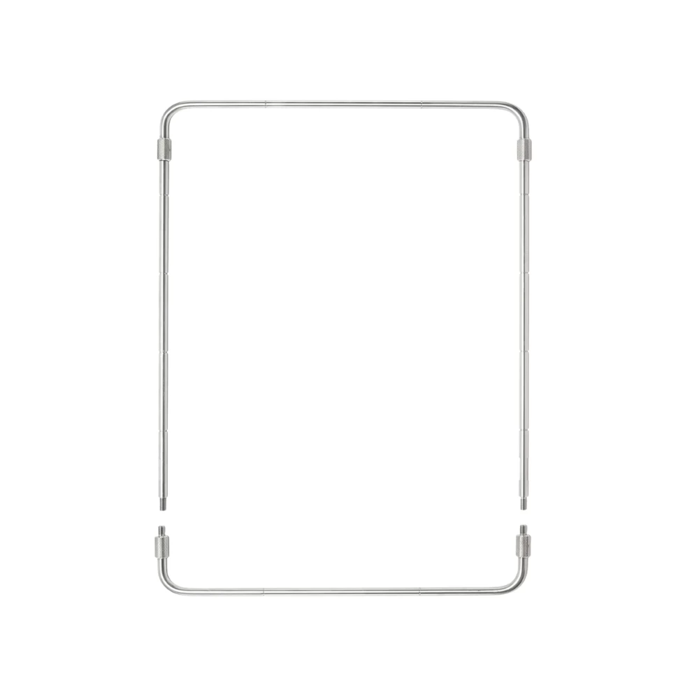 The TTA (Table Top Architect) Unit Frame is a component of the IGT system and TTA series that can be used as a shelf for storage. Kitchen tools can be hung on the frame, and it is compatible with the Shallow Mesh Tray Half Unit and Deep Mesh Tray Half Unit for additional storage and organizing. To use, connect the frame ends into two TTA Clamp Tools and adjust the tension.