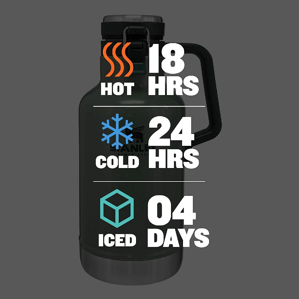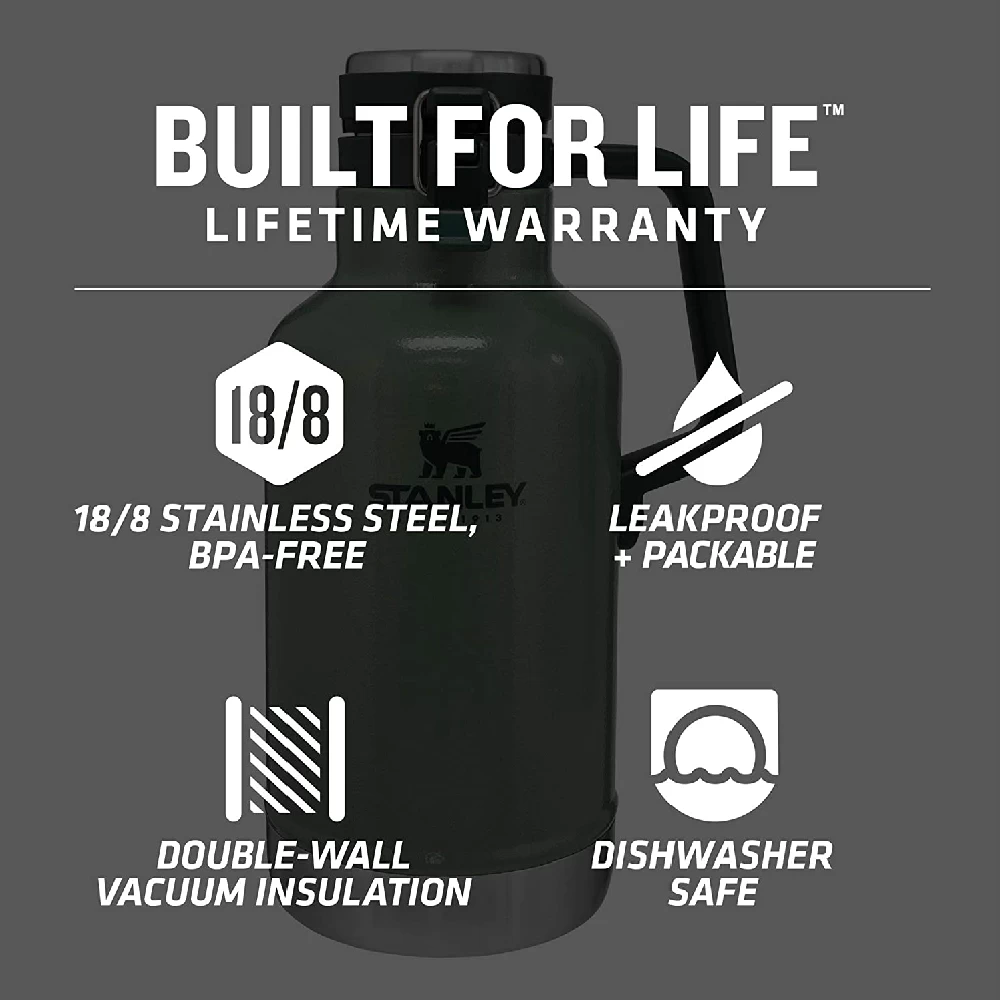 What’s that call echoing throughout the land, bouncing off mountains and tumbling through valleys? “Cold beer, and lots of it!” the armies of the thirsty cry out. Rising to the call for cold, fresh beer, the 64oz Classic Vacuum Growler lets you transport your favorite brew in fully functional and iconic style. Take control with a rugged handle for easy carry and one-handed pouring. The wide mouth allows for quick filling, sharing, and cleaning. That satisfying ‘pop’ you hear when you open this bad boy is a sure sign your beer is fresh and bubbly. It ain’t Grandad’s old vacuum bottle, but he’ll raise his pint in admiration. You might just have to top him off.