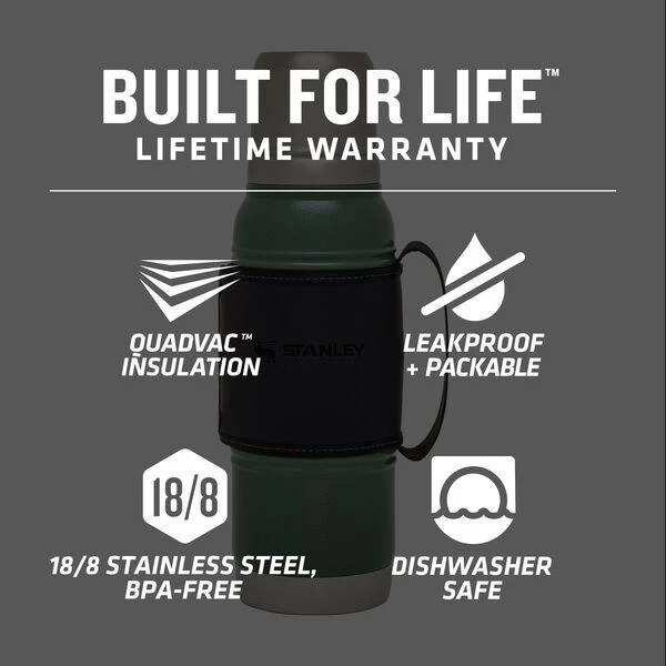 Old-school meets state-of-the art with this smart thermal bottle. QuadVac™ insulation gives your drinks four layers of hot/cold protection. Thicker steel offers superior durability. And the easy-grip wrap lets you hang on tight. There’s also a double-wall steel cup to preserve the flavor integrity of your water, coffee, tea or beer.