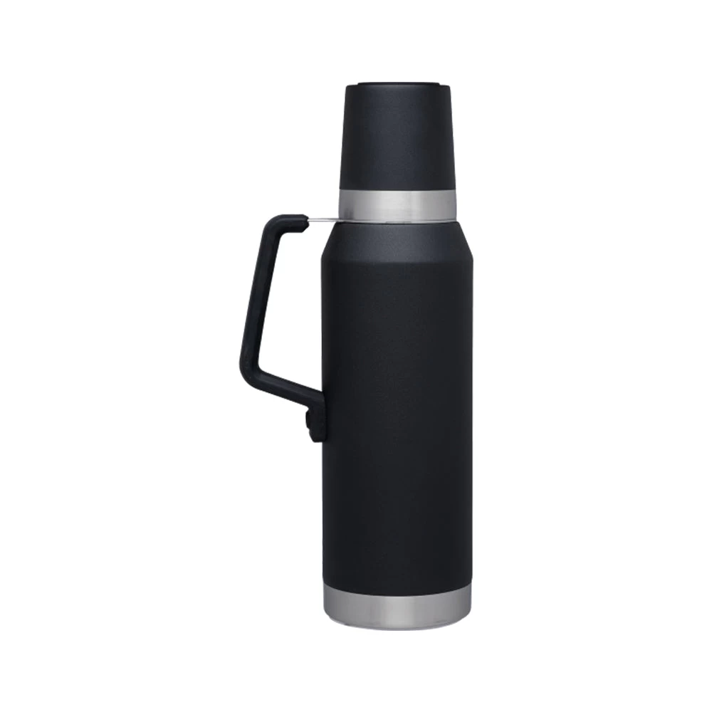 For the pro’s Pro, the toughest of the tough and those who demand the very best, the 1.4Qt master vacuum bottle offers extreme durability and thermal retention. The 1.0mm 18/8 stainless steel is rust-proof and naturally BPA-free while the Quadra insulation keeps drinks hot 40 hours, cold 35 hours, or iced 160 hours. Also featured is a steel-lined pour thru stopper so no plastic comes in contact with your drink. A robust steel handle comes with a molded silicone grip for comfort, and the bottle is dishwasher safe.
