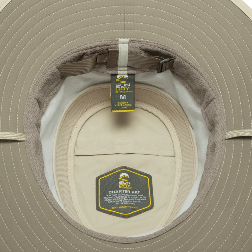 Because the trails of life lead through uncharted territory, the Charter Hat is ready for anything. All the sun protection you expect from Sunday Afternoons, plus strategic ventilation and a moisture wicking sweatband keep you cool while you wander. The Charter is such a good companion, it even holds your sunglasses for you.