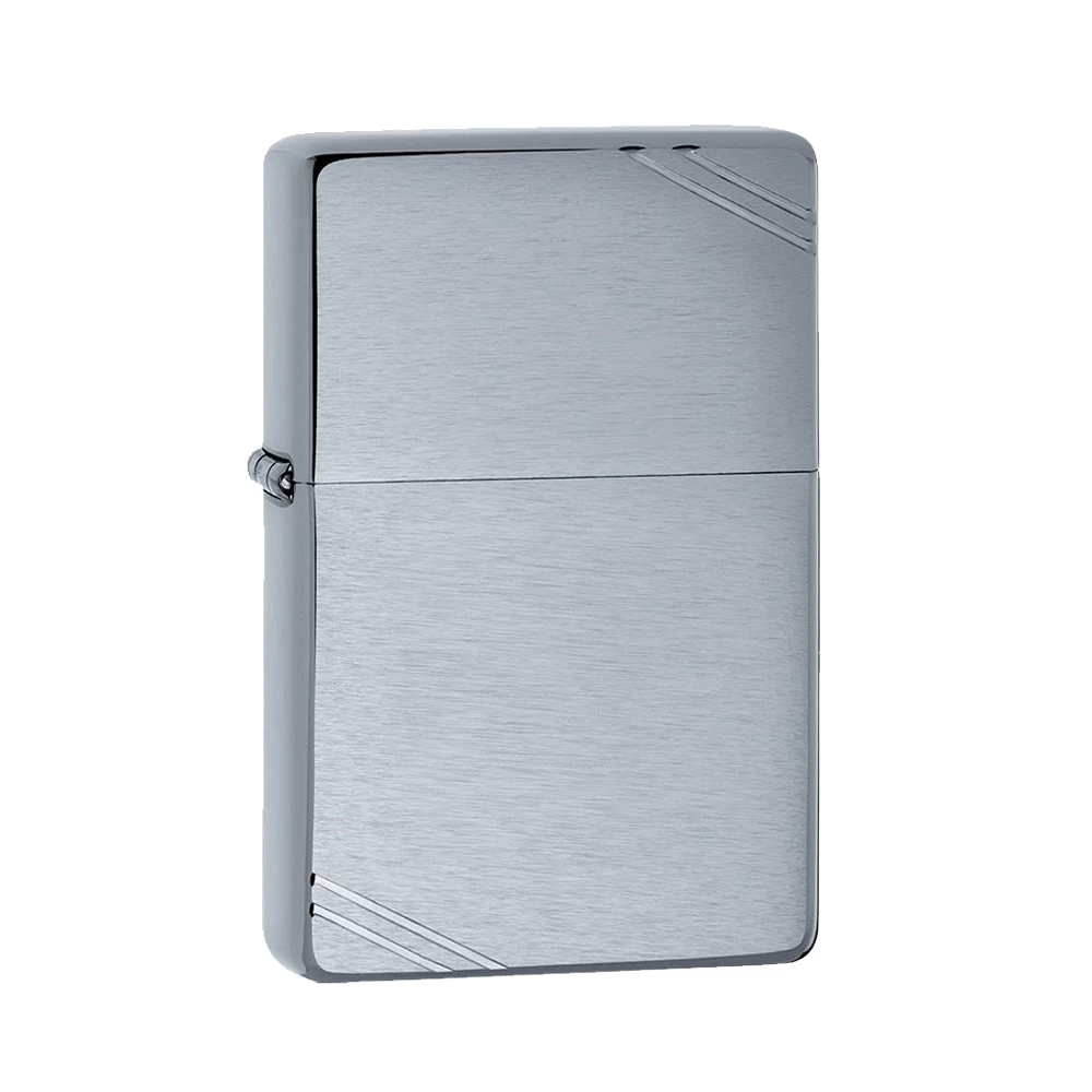 There’s nothing old about this vintage model. Features rounded corners and edges replacing the 1935 square case. This Brushed Chrome windproof lighter has slashes on the corners of this lighter. Comes packaged in a gift box. For optimal performance, fill with Zippo lighter fluid.